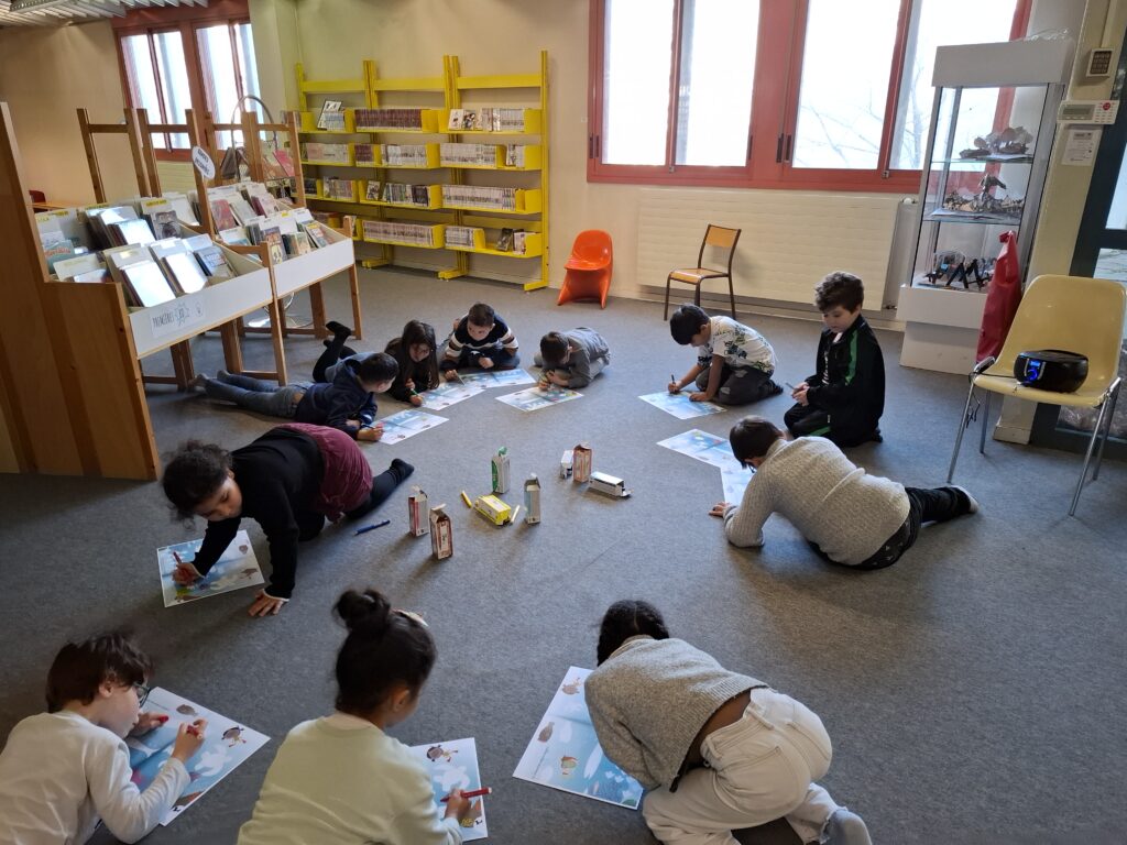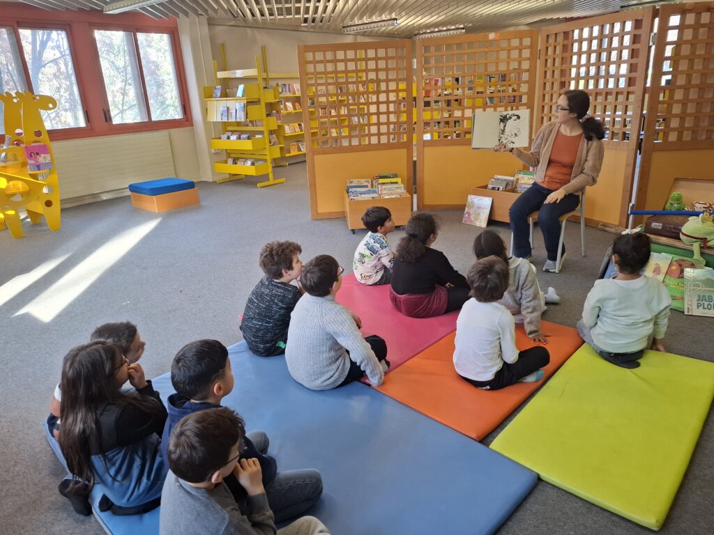Vendredi 11 décembre, nous sommes allés à la bibliothèque des clochettes pour écouter des histoires sur le thème de l’eau (le thème de l’année) et faire un petit travail dessus. Nous avons emprunté beaucoup de livres sur le thème de l’eau.