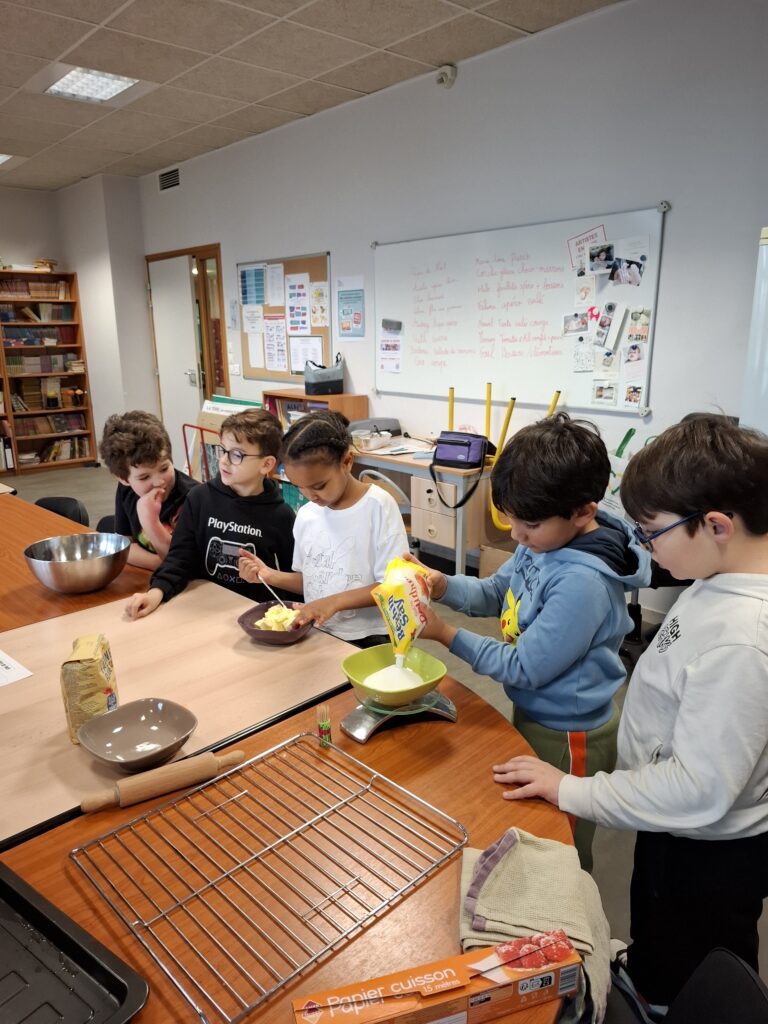 Mardi 16 décembre, nous avons fêté l anniversaire de Diogo. Pour cette occasion, nous avons fait des sablés. La recette sera dans le classeur bleu.