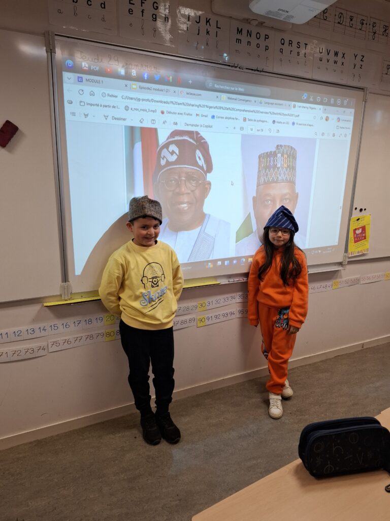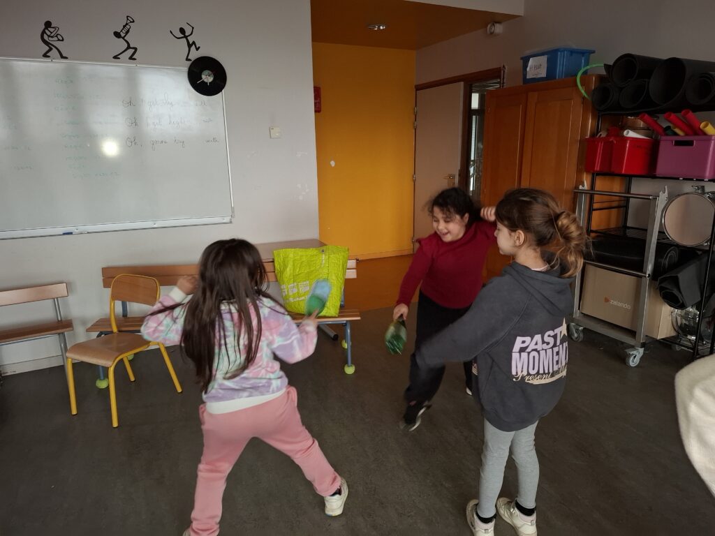 Nous avons fait notre première séance de musique vendredi. Nous travaillons avec la classe de Caroline. Nous travaillons sur des danses et des chants du monde.