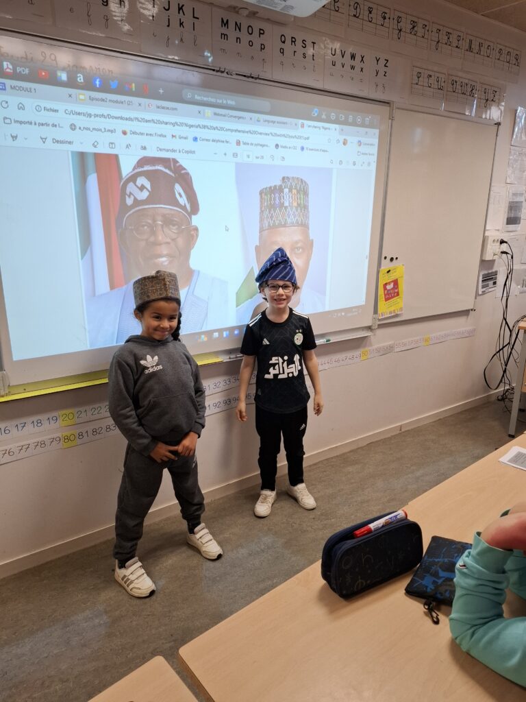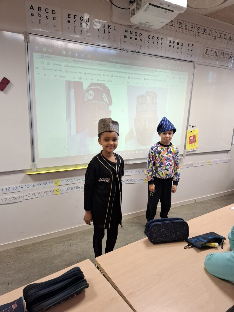 Il nous a amené des chapeaux de son pays: le Nigeria.